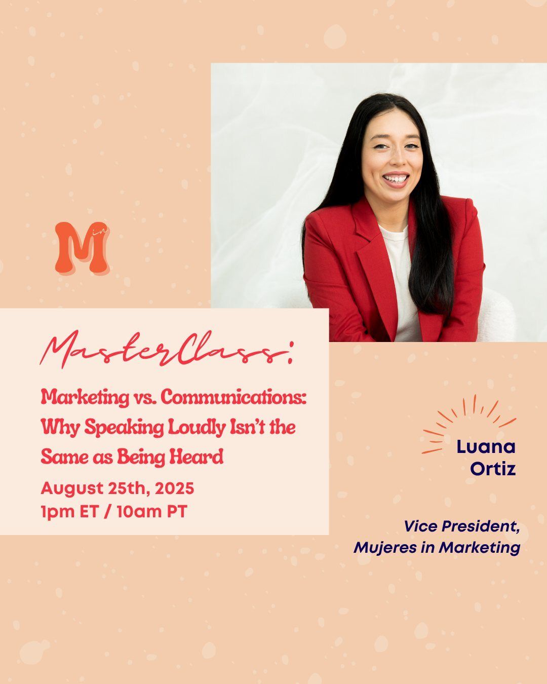 Join MiM VP and Marketing Manager for Univision Orlando and Tampa Bay, Luana Ortiz, on Monday, August 25th at 1PM ET as she leads us through our next Masterclass. We’ll dive deep and break down marketing and comms, explore why understanding their differences matters more than ever, and discuss how leveraging both strategically is essential to help your business not just survive, but truly connect with your audience.
