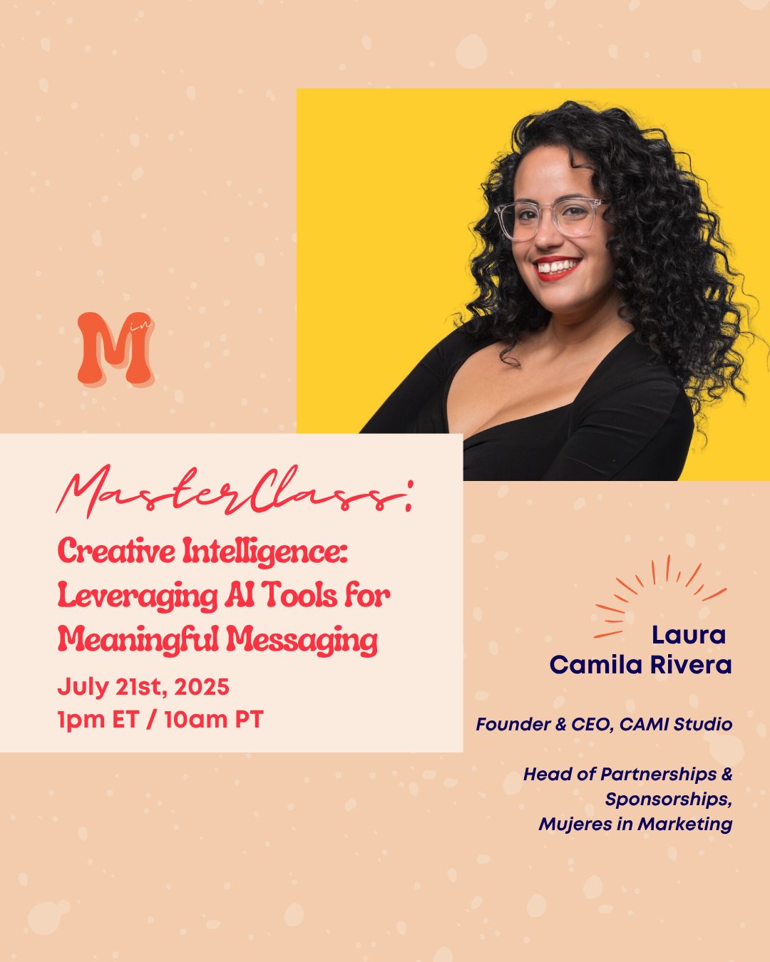 We’re thrilled to welcome Laura Camila Rivera, Founder & CEO of CAMI Studio and MiM’s Head of Partnerships & Sponsorships, for an exciting new MasterClass on the future of intentional marketing.
