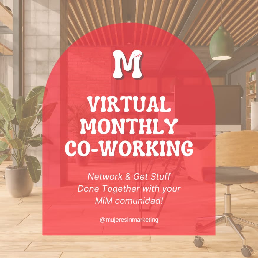 We’re bringing the vibes y la productividad to your screen. Join us for our Virtual Coworking Session on Friday, July 25th at 9am ET, for a focused, supportive space to knock out your to-dos and connect with fellow Latinas in marketing.